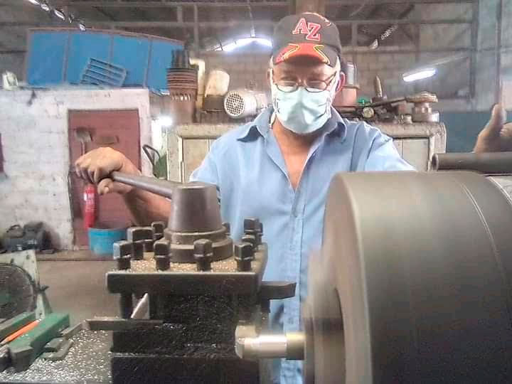 En el taller de la Unidad Empresarial de Base (UEB) Flota Pesquera Marina Júcaro, el obrero fabricó una pieza tipo entredós, iniciativa también en favor de la vida. «Con urgencia se necesitaba la solución y en tiempo récord hice en el torno con bronce los primeros 16 accesorios, luego realicé otros», afirma el tornero.
