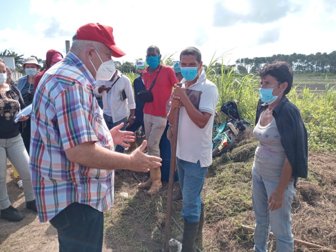 En intercambio con los trabajadores que, por un cambio de labor en su empresa, se encargan de la reanimación del organopónico, Tapia Fonseca reflexionó acerca de su vinculación permanente a la producción en esa entidad. Por ello, les sugirió constituir una micro o pequeña empresa estatal con mayor autonomía para transformar la realidad del lugar.