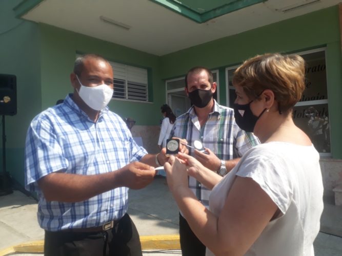 En actividad presidida por Liván Izquierdo Alonso, primer secretario del Comité Provincial del Partido, y Osmar Ramírez, secretario general de la Central de Trabajadores de Cuba en predios yumurinos, Durán García ponderó la profesionalidad de los directivos y trabajadores del LBM, protagonistas de un quehacer con repercusión en otros territorios del país, a los que apoyaron para entregar en el menor tiempo posible los resultados de las pruebas de PCR.