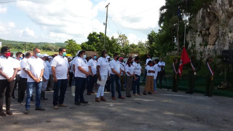Bajo la sombra de las rocosas montañas, Elizabeth Gil Núñez, miembro del secretariado provincial de la Central de Trabajadores de Cuba dio lectura a la declaración de la organización sindical en repudio a las acciones desestabilizadoras y manipuladoras de mercenarios financiados por el imperio del norte.