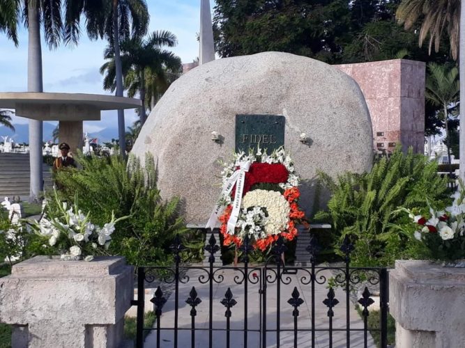 A un lustro de haber sido depositadas sus cenizas en la piedra que las atesora en el cementerio patrimonial de Santa Ifigenia el pueblo santiaguero acudió al camposanto, en marcha patriótica, desde la Plaza de Revolución Antonio Maceo, para reverenciar a un hombre inmortal ya convertido en semilla, luz e inspiración.