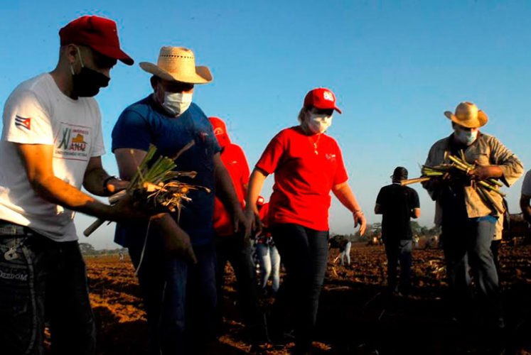 Desde de las primeras horas de la mañana de este domingo allí se dieron cita en la siembra de caña trabajadores de esa entidad y de todos los sectores del territorio junto a jóvenes, cederistas y federadas quienes compartieron labores junto a Gladys Martínez Verdecia, integrante del Buró Político del Partido y su primera secretaria en la provincia, miembros del Secretariado Nacional de la CTC y dirigentes sindicales.