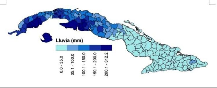 Los territorios occidentales promediaron 176,3 mm, los centrales 56,2 y los orientales 4,6 mm. Los acumulados más notables se registraron en el municipio especial de Isla de la Juventud (237,2 mm) y en Pinar del Río (205 mm). Los municipios que más agua embalsaron fueron: Pinar del Río, Consolación del Sur, Aguada y Los Palacios.