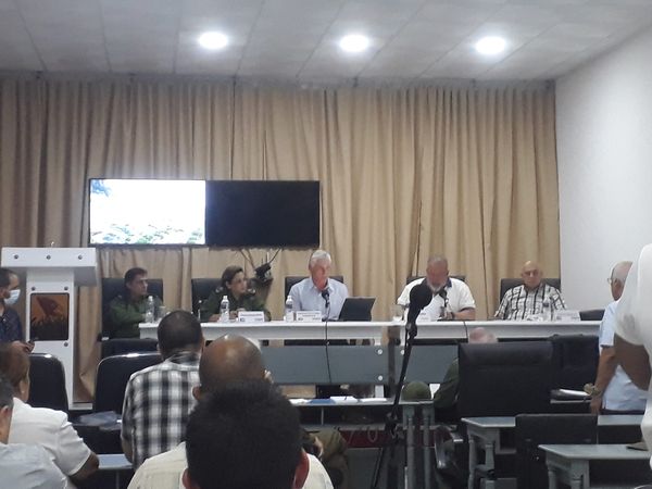 El Gobernador de Matanzas hizo referencia a los trabajadores que se rotan por turnos, y a los especialistas de México, de Venezuela, y de Cuba, quienes concilian permanentemente las ideas en este momentos de peligros y de combate.(Presidencia)