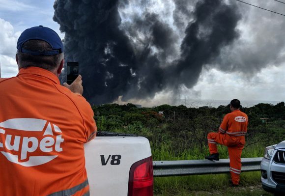 El gobernador de Matanzas, Mario Sabines comparó las llamas de este tercer tanque como un pebetero o fogón, sin derramamiento de combustible, hasta el momento.