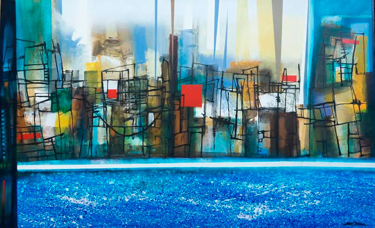 Desde que disfruté los primeros trabajos de este gran artífice con una destacada carrera internacional, me atrajo su singular estilo inspirado en la naturaleza, la ciudad y en la vida misma, y en el que sobresale una amplia gama de tonalidades con el fin de representar texturas o calidades diversas que instan al observador a introducirse en lugares placenteros, casi oníricos, cuyas narraciones casi siempre aluden a nuestra insularidad, expresadas a través de arquitecturas precisas en las que resaltan sus emblemáticas torres, ejercicio de detalle, limpieza y muy bien estudiado uso de los pigmentos cálidos (rojos, naranjas, amarillos, ocres o marrones) y los matices fríos, con paletas en las que son recurrentes los azules en disímiles gradaciones, alusivas al mar —recurrente, espléndido, extenso, delimitador de nuestra geografía—, el cielo y la tranquilidad espiritual del mensaje que trasmite.