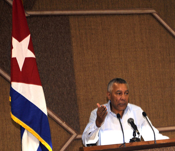 Intervención de Roberto Morales Ojeda, miembro del Buró Político del CCPCC y secretario de Organización del PCC.  Foto José Raúl Rodríguez Robleda