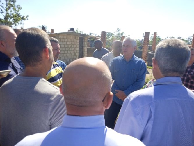 Acompañan al presidente Manuel Marrero Cruz, primer ministro; Alejandro Gil Fernández, titular de economía y planificación, así como el de la construcción René Mesa Villafaña y autoridades locales.