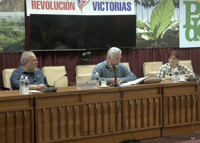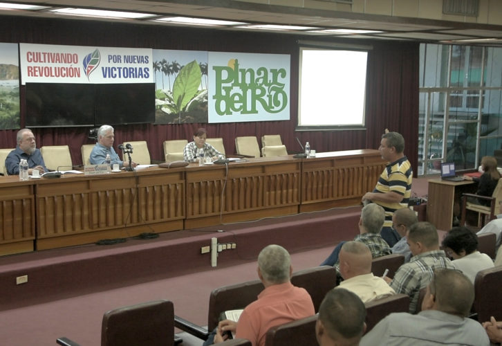Con la presencia de Miguel Díaz Canel Bermúdez, presidente de la República de Cuba, y del primer ministro Manuel Marrero Cruz, se chequea la marcha del proceso de recuperación en Pinar del Río con los integrantes del grupo temporal de trabajo creado para ello en el territorio.