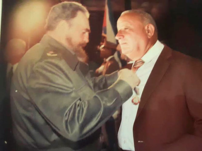 El 4 de mayo de 1997, Fidel colocó la estrella dorada en el pecho de Renán. Foto: Cortesía de Renán Cabrera Franco