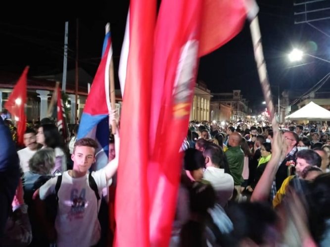 El pueblo salió una vez más a recibir la caravana pese al frío de esta noche invernal en Pinar del Río. Foto: Evelyn Corbillón Díaz
