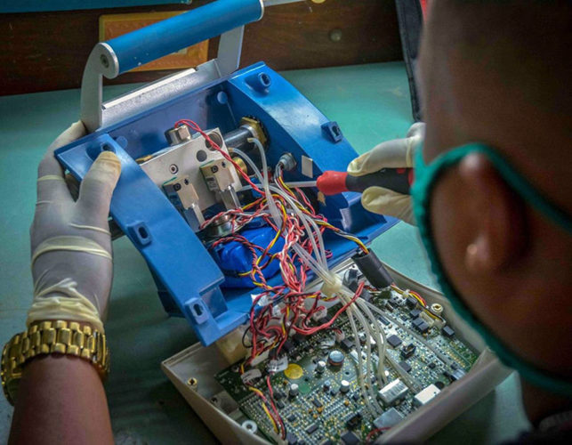 El ingeniero Carlos Dorticós Morales, director general del Centro de Ingeniería Clínica y Electromedicina (CICE) cienfueguero, explicó que la labor de los miembros de ese sobresaliente colectivo tiene como propósito fundamental salvar vidas, a pesar de las limitaciones en la disponibilidad de moneda libremente convertible para comprar en el mercado internacional que afronta la nación y el recrudecido bloqueo económico, comercial y financiero impuesto por el gobierno estadounidense al pueblo cubano.