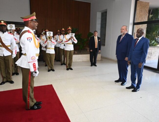 En la mañana de este martes, el miembro del Buró Político y primer ministro, Manuel Marrero Cruz, recibió a su homólogo de la República de Djibouti, Abdoulkader Kamil Mohamed, quien realiza una visita oficial a nuestro país.