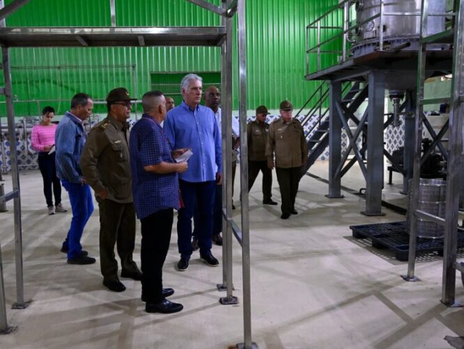 El mandatario — acompañado por el miembro del Buró Político y ministro de las FAR, general de cuerpo de ejército Álvaro López Miera, y el general de brigada Israel Cervantes Tablada, director general de la UIM — conoció sobre el desempeño de la empresa que en medio de un año muy complejo para el país cierra con eficiencia en todos sus indicadores.