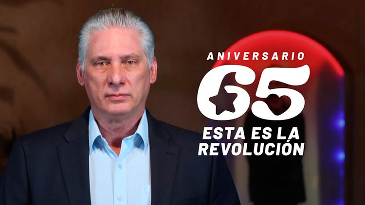 Al celebrar el 65 aniversario de la Revolución cubana, quiero enviarles un abrazo agradecido, por cada paso de avance frente a los colosales desafíos que nos han impuesto seis décadas de bloqueo económico reforzado y los errores derivados de la incesante búsqueda de salidas para saltarnos el brutal cerco.