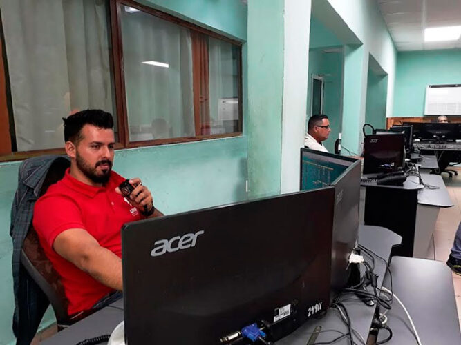 Y el joven Richard Oller Ricardo permanece inmerso en su responsabilidad como despachador de carga, en el despacho provincial del Sistema Electroenergético Nacional, “nuestra función aquí es monitorizar durante las 24 horas del día, en diferentes turnos, el correcto funcionamiento del Sistema Eléctrico a nivel nacional del cual formamos parte”, dice.
