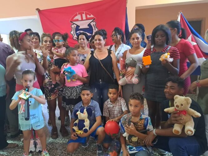 Dirigentes de la CTC de aquí se movieron hacia la casa de niños sin amparo familiar con juguetes, útiles escolares y golosinas. Foto: Secretariado Municipal de la CTC en la Isla de la Juventud