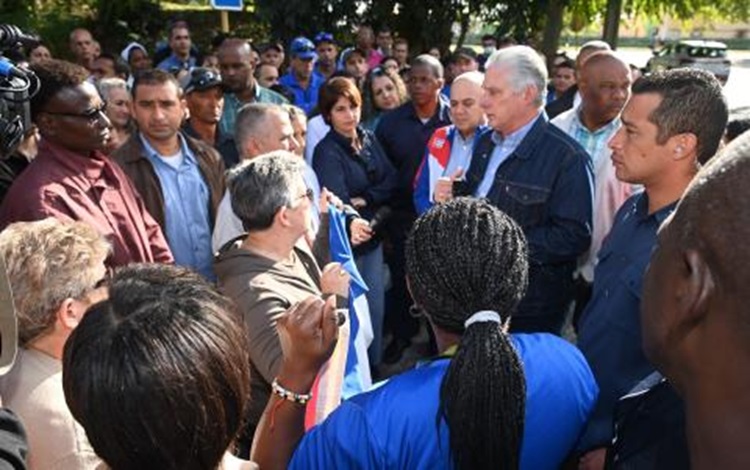 Con una franqueza que inspira, Díaz-Canel dialogó sobre los objetivos de las visitas y sus impresiones del recorrido. A los presentes les transmitió su certeza de que «viendo lo que hoy se puede cambiar superaremos los problemas. Sin rendirnos vamos a seguir adelante». (Tomado de pcc.cu)
