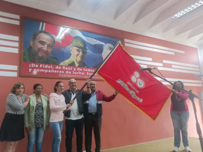 La EMPAI entre los 85 colectivos del país honrados con este estandarte por la fundación de la CTC el 8 de enero de 1939. Foto: Noryis