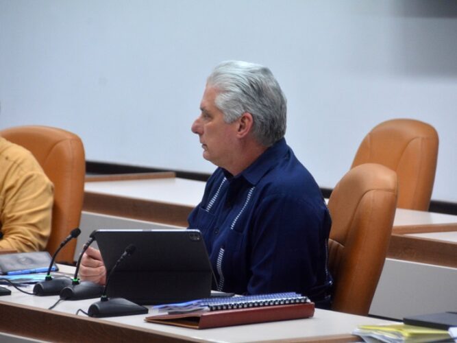Díaz-Canel resaltó el compromiso de los trabajadores de este sector , quienes mantienen la vitalidad de los servicios médicos a pesar de la escasez de medicamentos e insumos, como consecuencia del recrudecimiento del bloqueo económico impuesto por Estados Unidos a Cuba.