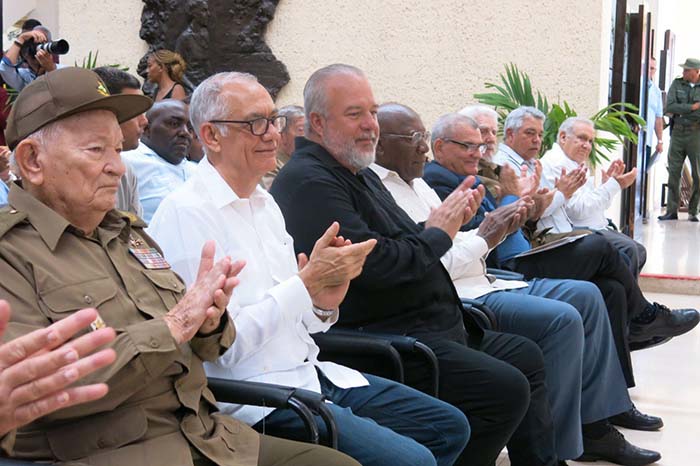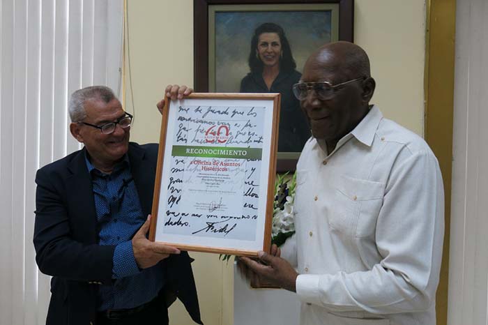 El homenaje al colectivo de la Oficina de Asuntos Históricos contó con la presencia de los miembros del Buró Político del Comité Central del Partido Comunista de Cuba Salvador Valdés Mesa, vicepresidente de la República; Manuel Marrero Cruz, primer ministro; Ulises Guilarte de Nacimiento, secretario general de la Central de Trabajadores de Cuba; Ricardo Guerra y el Comandante de la Revolución Ramiro Valdés Menéndez.