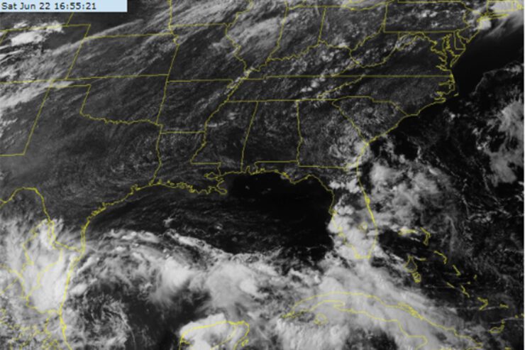 El mapa del satélite muestra amplia nubosidad sobre Cuba, la Florida y parte del Golfo de México.