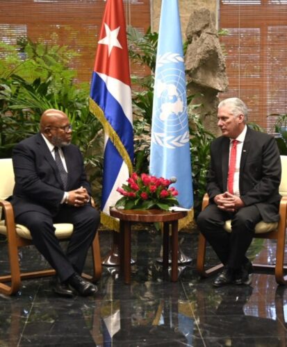 De un “gran placer” catalogó su encuentro con el Presidente cubano, en cuyo contexto reafirmó la importancia de “los lazos de cooperación y amistad que han definido las relaciones entre las Naciones Unidas y Cuba durante muchas décadas”.
