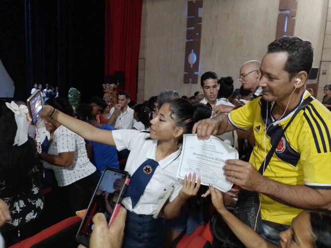 Prolongados aplausos recibieron los mejores graduados de la formación pedagógica: Luis Andrés Castillo Rodríguez; Magdalena Ortiz Torres; Yadiana Yandra Martínez Núñez y Yidelis Peña Montesino, todos estos de la Escuela Martha Machado Cuní. Mientras del politécnico Fe del Valle Ramos aparecen: Abraham Pérez Soto; Dayan Martínez Vega; Sandra Susana Saname Puig; Yadiana Yandra Martínez Núñez; Luis Andrés Castillo Rodríguez; Raquel Roja Rodríguez; Anyelis Amancay Terrero Moreno y Johnny Guerra Echavarría.