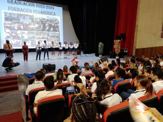 Unos 90 nuevos docentes recibieron hoy su título, en el acto de graduación de la formación pedagógica del curso 2023-2024, en el Municipio Especial, quienes se incorporarán a los colectivos de maestros de diferentes instituciones educativas del territorio, bajo la responsabilidad de formar, de manera integral, a las futuras