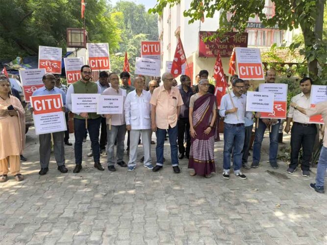 En un acto, ante la presencia del encargado de negocios a.i de la embajada de la nación caribeña en India, Abel Aballe, dirigentes y representantes de CITU manifestaron también su oposición a la injusta inclusión de la isla en la lista de Estados presuntos patrocinadores del terrorismo.