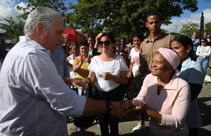 Díaz-Canel dialogó con los pobladores de la comunidad sobre la necesidad de la participación popular e indagó por el estado de los servicios básicos en la zona.