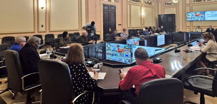 Los resultados de la preparación de los delegados para el análisis de la presentación y aprobación del Plan de la Economía y el Presupuesto del Estado del año 2025 fueron los temas centrales analizados este viernes en la reunión con presidentes de las asambleas municipales del Poder Popular, encabezada por el miembro del Buró Político del Comité Central del Partido Esteban Lazo Hernández, presidente de la Asamblea Nacional del Poder Popular y del Consejo de Estado.