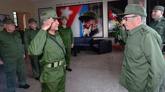El General de Ejército Raúl Castro Ruz, líder de la Revolución Cubana, y el compañero Miguel Díaz-Canel Bermúdez, presidente del Consejo de Defensa Nacional, realizaron una visita al Puesto de Mando del Ejército Occidental, como parte de las actividades que se cumplen en la segunda etapa del Ejercicio Estratégico Bastión 2024.