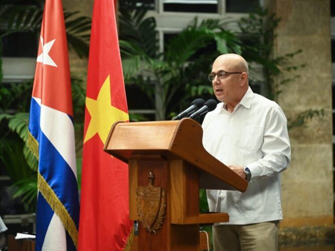 En nombre de Cuba, el miembro del Buró Político, Roberto Morales Ojeda, dijo desde el Salón Portocarrero: «Hoy nos reunimos para celebrar un hito trascendental en la historia de la lucha por la justicia, la libertad y la soberanía de los pueblos: el aniversario 95 de la fundación del Partido Comunista de Vietnam».
