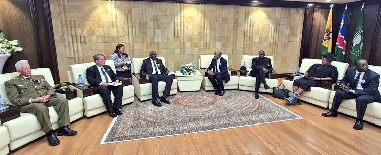 Por su parte, el mandatario namibio agradeció por la solidaridad de la Mayor de las Antillas en estos difíciles momentos para su pueblo y, especialmente, por la presencia en Windhoek de una delegación cubana de alto nivel integrada, además, por José Ramón Monteagudo Ruiz, miembro del Secretariado del Comité Central del Partido y jefe de su Departamento Agroalimentario; y los Héroes de la República de Cuba General de Cuerpo de Ejército Joaquín Quintas Solá, viceministro de las Fuerzas Armadas Revolucionarias, y Fernando González Llort, presidente del Instituto Cubano de Amistad con los Pueblos (ICAP); para participar en el Funeral de Estado.