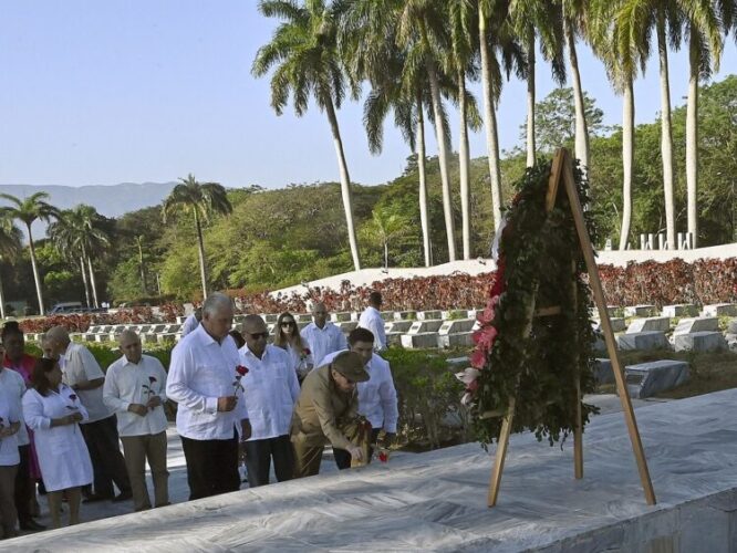 En la conmemoración, realizada en el Mausoleo del Segundo Frente Oriental “Frank País”, ubicado al pie de la montaña de Mícara, estuvieron presentes otros miembros del Buró Político, dirigentes del Partido, el Gobierno, la Federación de Mujeres Cubanas, las organizaciones de masas, la Unión de Jóvenes Comunistas, las Fuerzas Armadas Revolucionarias, el Ministerio del Interior y una representación del pueblo de Segundo Frente.