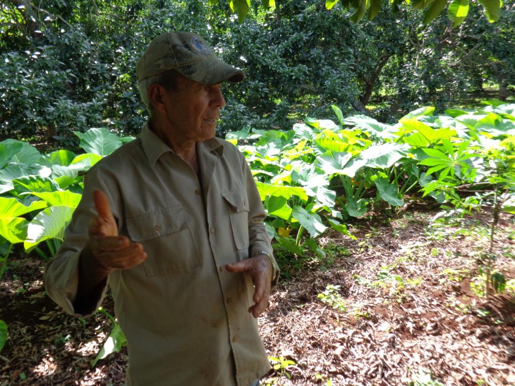 A sus 77 años de edad, Carlos Ruiz ha tenido oportunidades de sobra para aprenderlo. Sin ir muy lejos, durante la última seca debió pagar bastante por los viajes de agua con que –a tractor y carreta– logró mantener viva su siembra. Gracias a tantos desvelos, y a los suelos bien nutridos por materia vegetal, el verde reluce en sus cinco hectáreas de cítricos, frutales diversos, viandas… y hasta café.