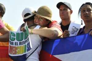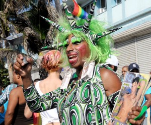 Arropada con una bandera multicolor, símbolo de la diversidad, y rodeada de personas lesbianas, gay, transexuales y bisexuales (LGTB), la diputada Mariela Castro Espín presidió este sábado, en pleno corazón del Vedado, la tradicional Conga, como parte de las actividades de la VI Jornada Cubana Contra la Homofobia.