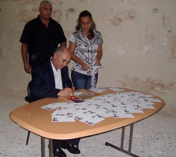 Posteriormente, en una de las salas del complejo, se llevó a cabo la cancelación de un sello postal conmemorativo, lo cual estuvo a cargo del Presidente del IACC, y de Grissell Reyes, directora de Ciencia e Innovación Tecnológica, del Ministerio de la Informática y las Comunicaciones.