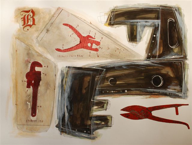 • Todos los dibujos integrados a esta muestra pertenecen a la serie Ferramenta, y fueron realizados mediante técnica mixta sobre cartulinas, cuyas dimensiones son 70 cm x 51 cm.
