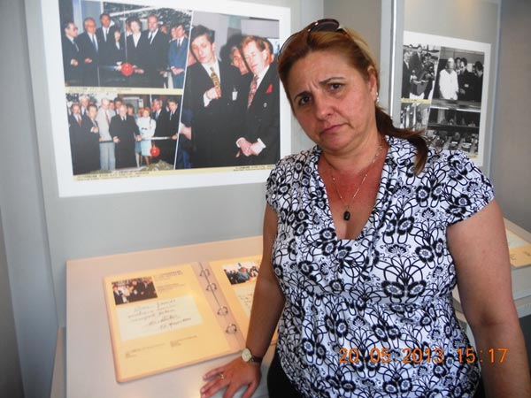 Elizabeth Palmeiro, esposa de Ramón Labañino, rindió tributo a las víctimas del criminal bombardeo atómico del 6 de agosto de 1945. Foto: Juventud Rebelde