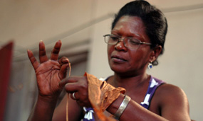 El tabaco está formado por picadura, fortaleza, capote y capa y, para que prenda más tarde en las manos de su consumidor, necesita calidad proporcional en cada una de estas fases. “Aquí –explica Lisvet Díaz, otrora torcedora de puros– el tabaco que se hace es mediano y chico, con normas de consumo específicas. Pero el capote llega muy grande, pagamos un precio superior y al final debemos adecuarnos y, a veces, picarlo en dos”.