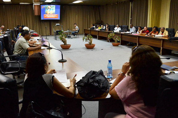 Dos comisiones de trabajo debatieron en torno a las ponencias Continuidad y perfeccionamiento de la historia en la provincia de Cienfuegos; Historia del sindicato de Cultura en la provincia de Villa Clara; Juan Taquechel López, apuntes para la biografía de un destacado líder obrero; Presentación de la historia del Sindicato Nacional de la Administración Pública; Historia del sindicato provincial de Educación, Ciencia y Deporte en Camagüey”.