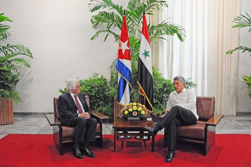 El compañero Miguel Díaz-Canel Bermúdez, primer vicepresidente de los Consejos de Estado y de Ministros, recibió en la tarde de este miércoles, al Dr. Mohsen Bilal, enviado especial del presidente de la República Árabe Siria, Dr. Bachar Al Assad.
