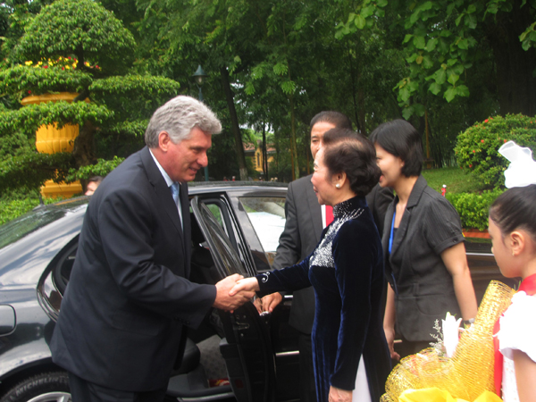 Hanoi.- La común disposición de acrecentar los sólidos vínculos bilaterales quedó patentizada en el encuentro entre la vicepresidenta de Vietnam, Nguyen Thi Doan, y el primer vicepresidente de Cuba, Miguel Díaz-Canel Bermúdez, quien además cumplió una visita de cortesía al secretario general del Partido Comunista de este país, Nguyen Phu Trong.