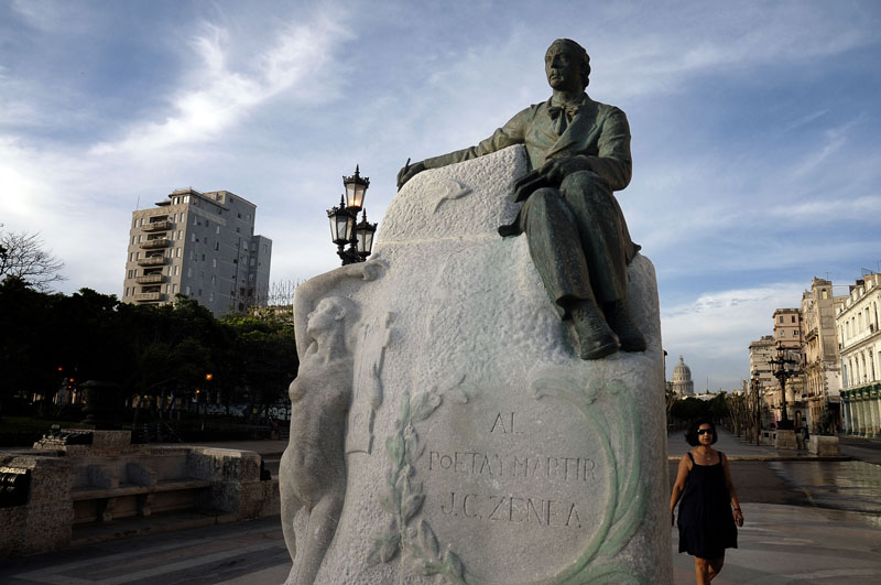 Juan Clemente Zenea, poeta nacido en Bayamo, Granma, el 24 de febrero de 1832. El monumento fue erigido en la década de 1920, y realizado por el escultor español Ramón Mateu a instancia de Piedad Zenea de Bobadilla, hija del poeta. A Zenea se le reconoce haber ejercido gran influencia en la literatura cubana al retomar el Romanticismo, marcando una nueva línea en la poesía hispanoamericana. Su labor política es contradictoria. Ningún personaje del mundo literario cubano, por su actuación política, es tan discutido como Zenea. Un tinte dramático cuaja los últimos días de su vida: martirizado por sus enemigos y acusado por sus propios compatriotas.