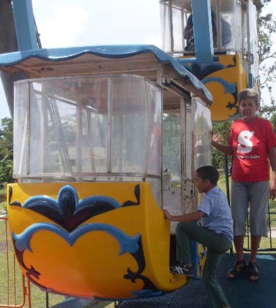 Foto 2: Trabajadores de la industria Marcel Bravo aceleran las labores técnicas en los “avioncitos” del parque santiaguero GUIA: Parque de diversiones 2