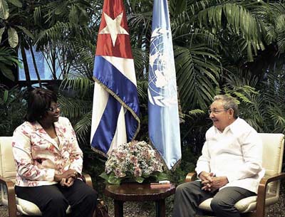 El General de Ejército Raúl Castro Ruz, Presidente de los Consejos de Estado y de Ministros, recibió en la tarde de este miércoles a Carisse Etienne, directora de la Organización Panamericana de la Salud (OPS), quien realiza una visita a Cuba.