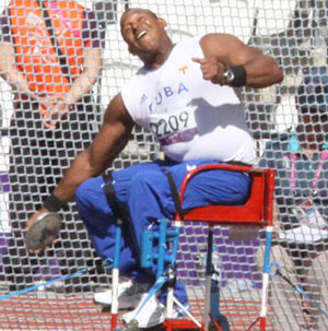 El granmense Díaz envió el implemento hasta los 45,32 metros y junto al éxito añadió un nuevo récord mundial en la categoría F56 (sobre silla).