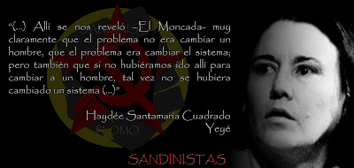 Haydee Santamaría, una de las dos mujeres que participó en las acciones de Moncada, sigue enérgicamente dulce, viva, íntegra, de entereza probada, de altura ilimitada, quien se volcó en  sensibilidad exquisita y supo conquistar horizontes, comprender, fundar y hacer a pesar de la soledad y las angustias de su vida.